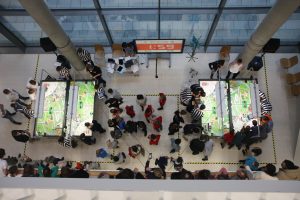 Das Robot-Game in der Arena auf Ebene -1 startet gegen 13.20 Uhr. Dabei zuschauen und das Fahrerlager auf Ebene 0 bestaunen, funktioniert gut für Kinder ab 6 Jahren.