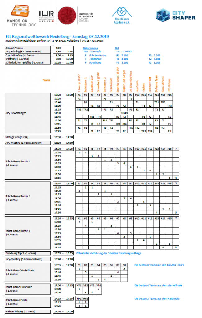 Acht ehemalige FLL-Teilnehmer werden am 07.12.2019 beim Regional-Wettbewerb im Mathematikon Heidelberg als Schiedsrichter im Einsatz sein.